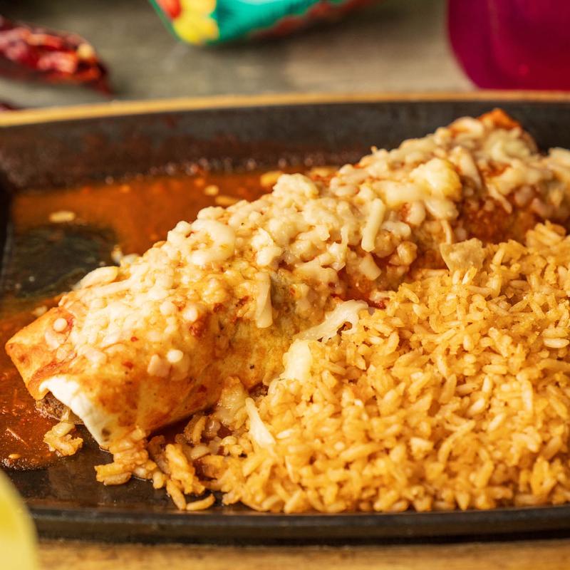 3 enchiladas filled with shrimp and fresh fish cooked with pico de gallo, onions, bell peppers topped with cheese dip, and salsa ranchera, lettuce, tomatoes, sour cream, and cheese.